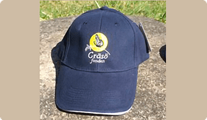 med Gräsöfondens logga fram. Rejäl och slitstark, reglerbart kardborrespänne bak. En storlek. 200 kr per styck, 350 kr för två + porto.